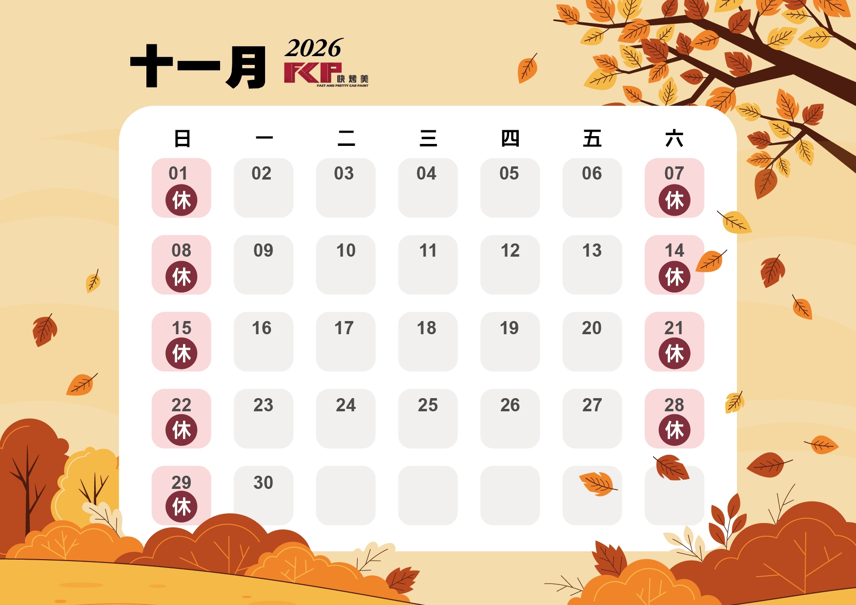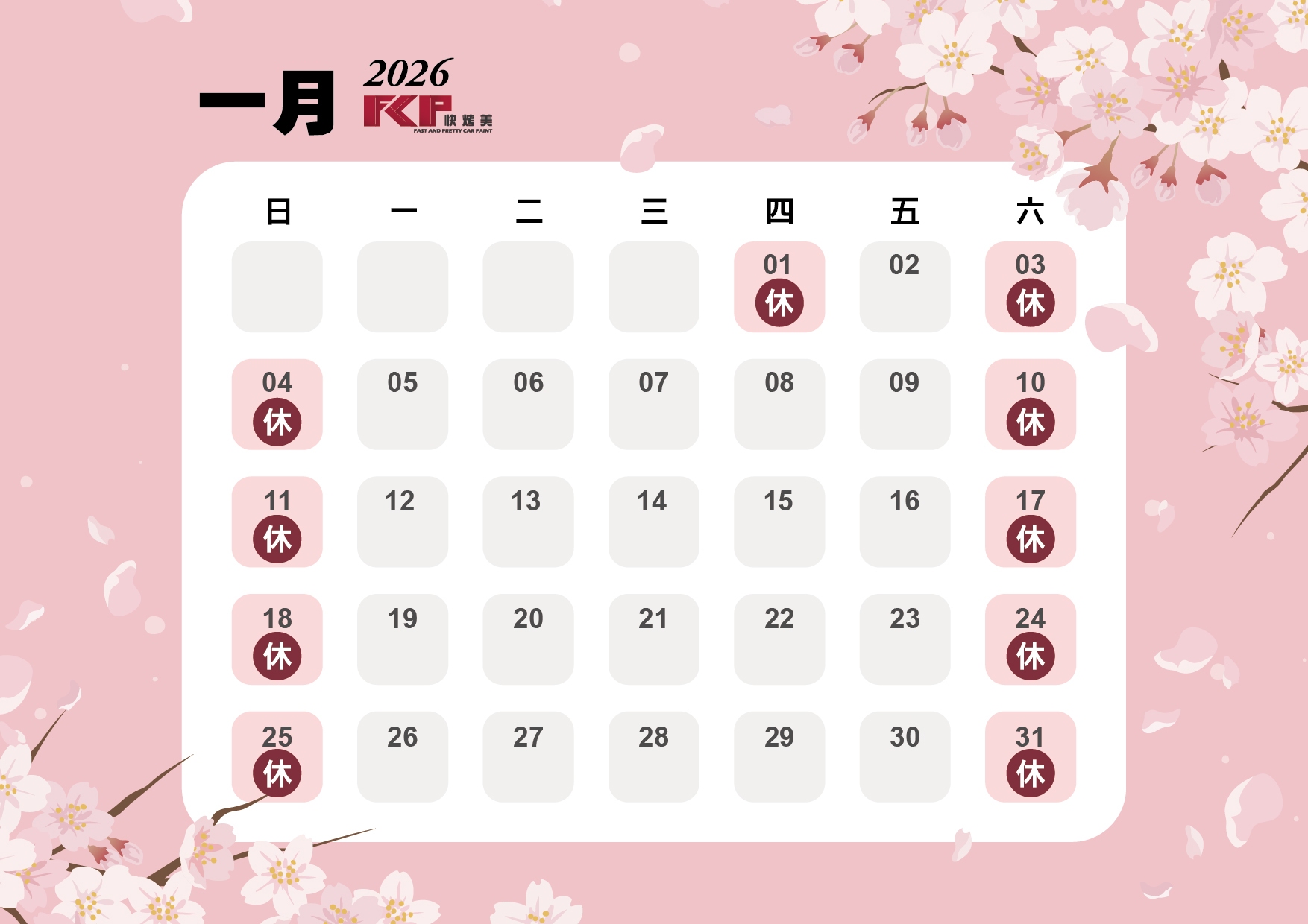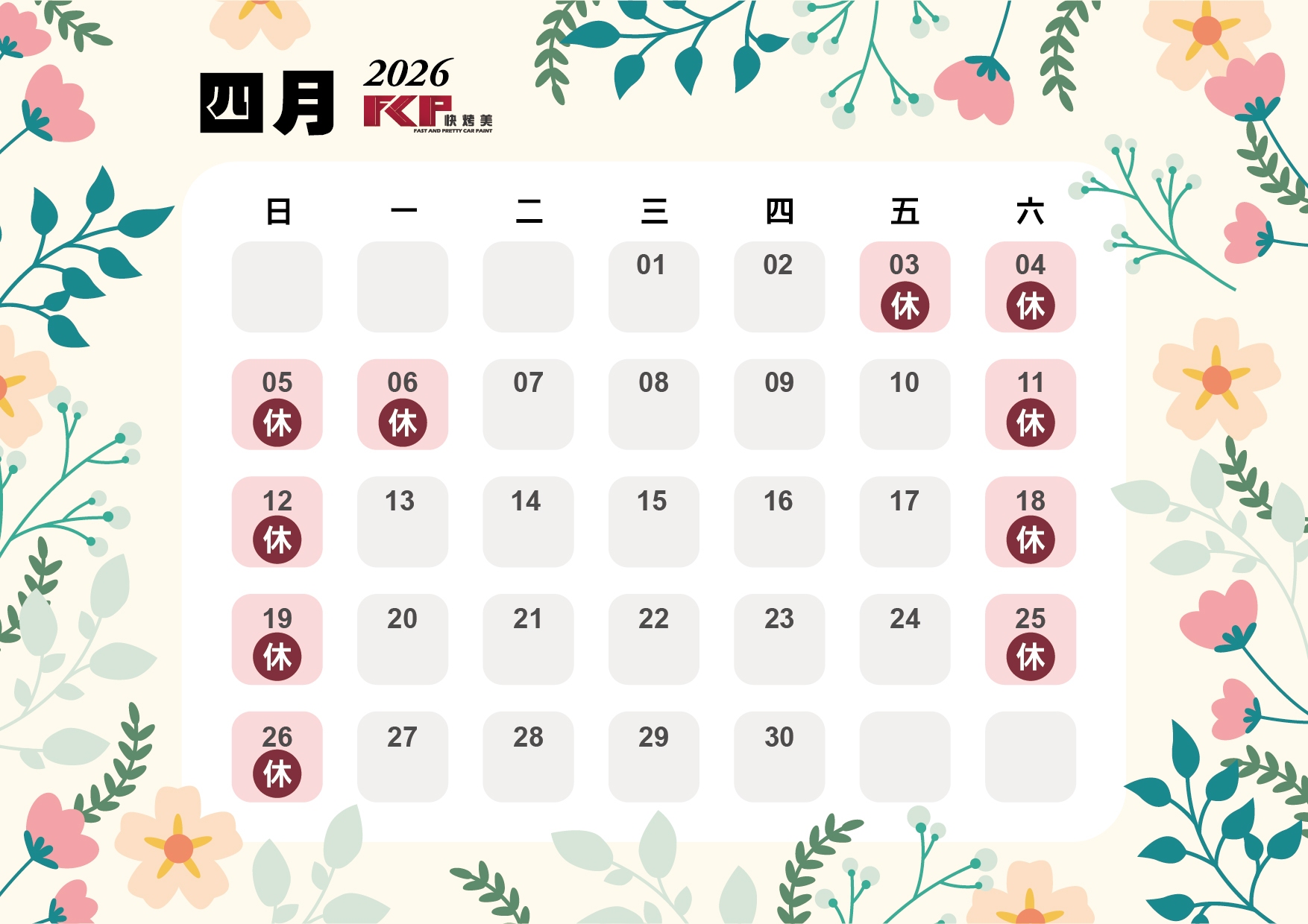 快烤美2026公休表