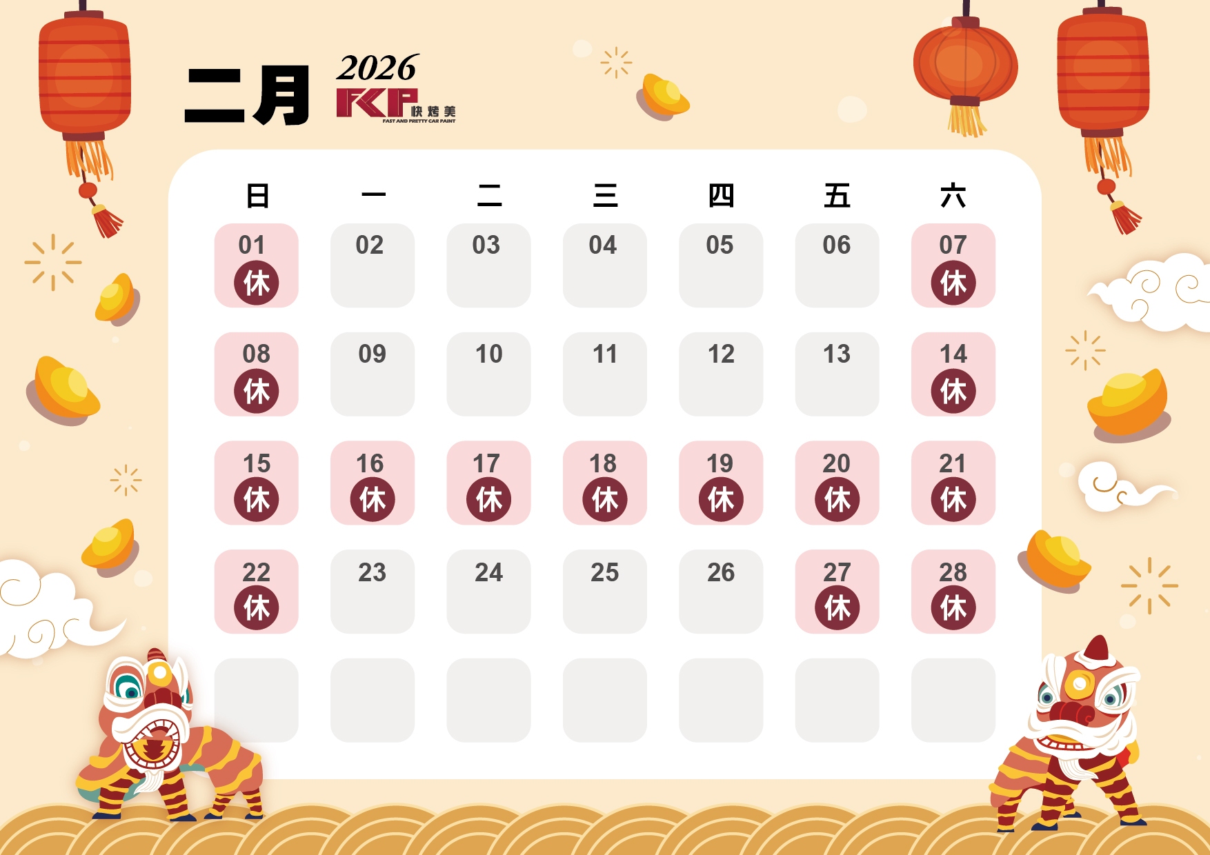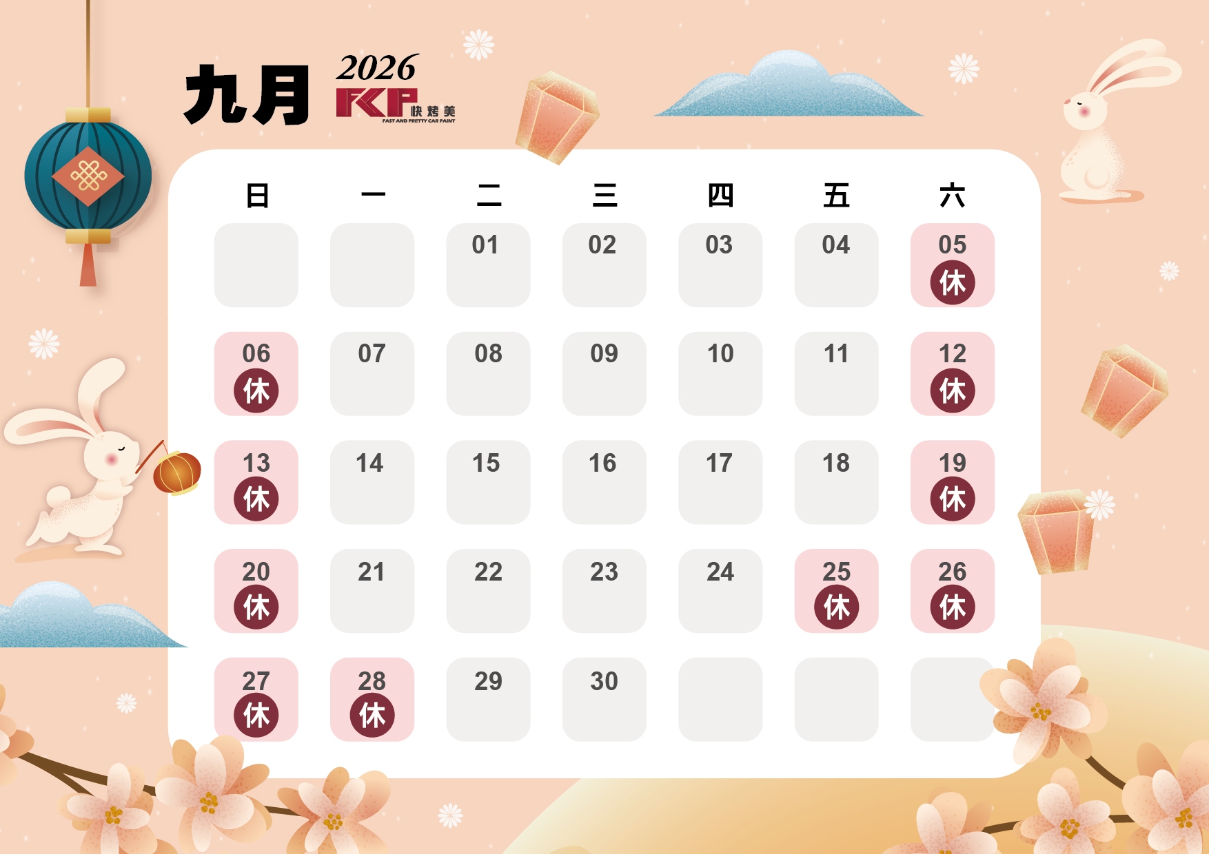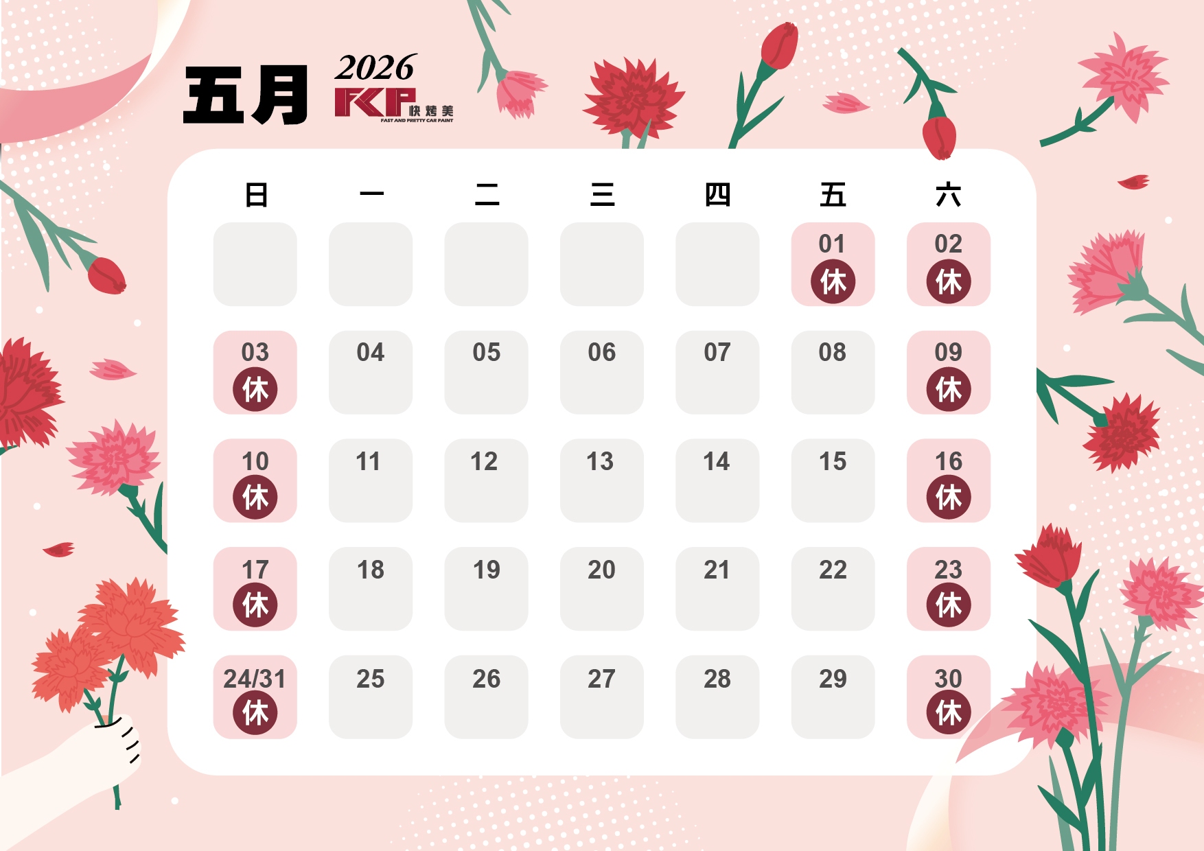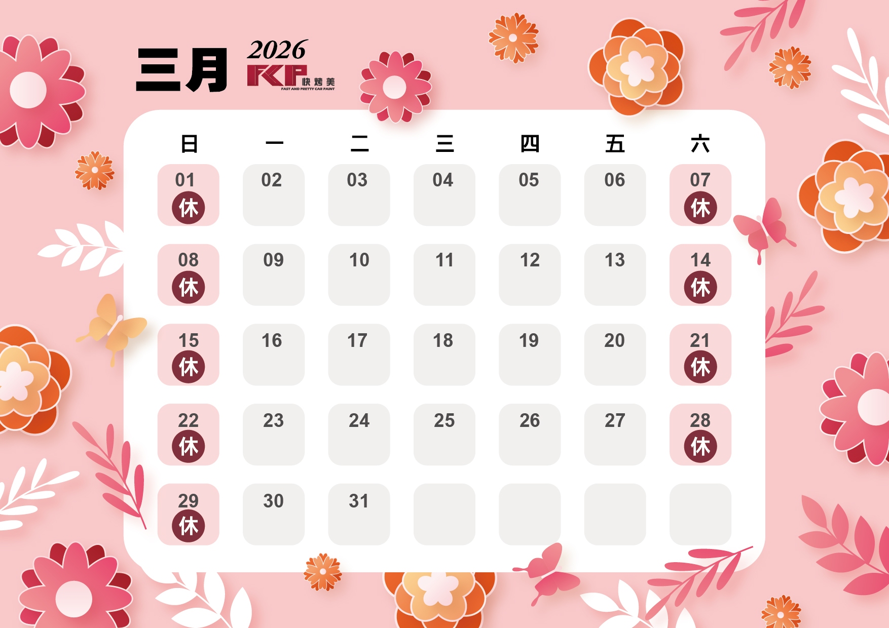 快烤美2026公休表